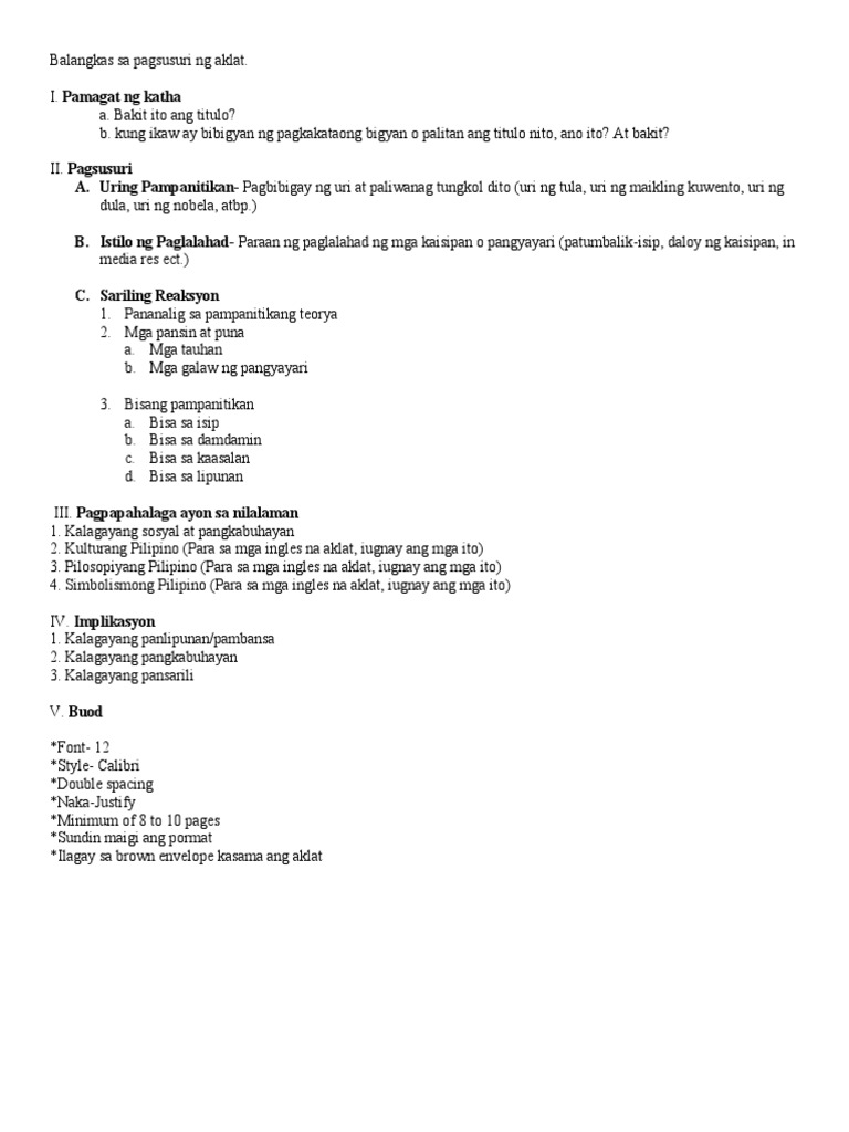 Balangkas Sa Pagsusuri Ng Akdang Pampanitikan Pdf