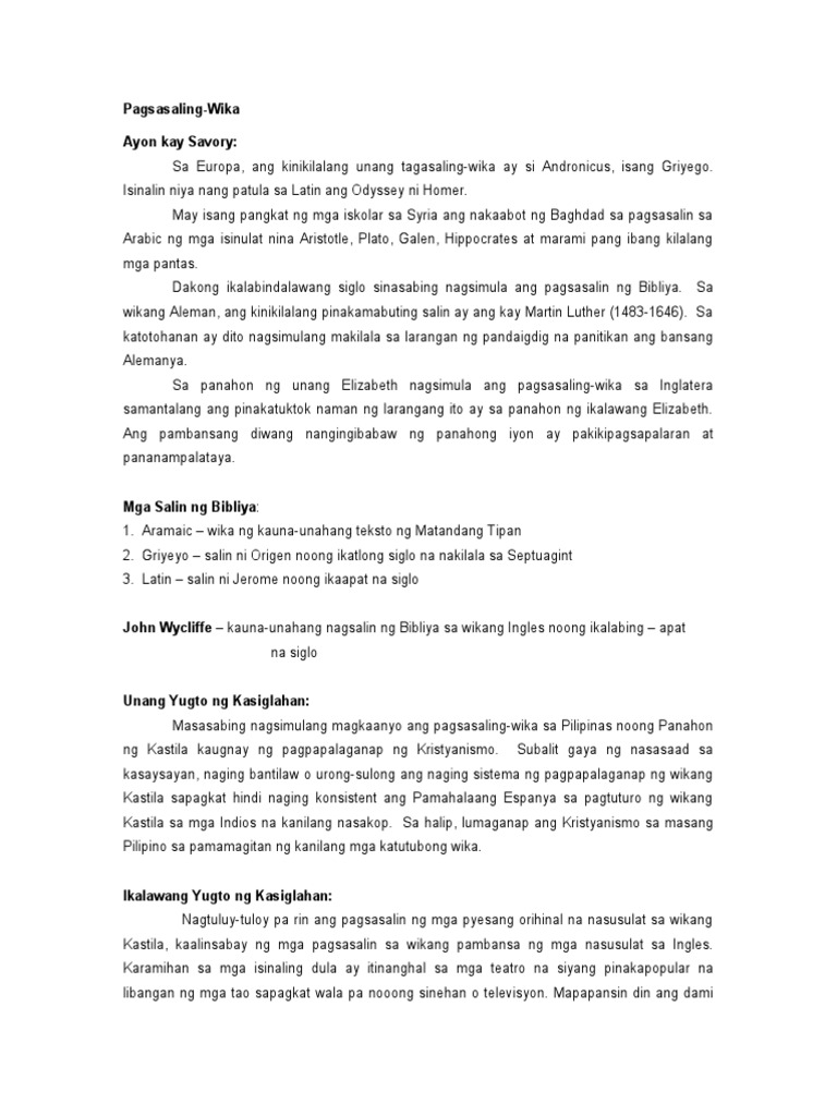1-8 na nagsasabii na ang buong lupa ay iisang wika at iisang mga salita 7. As white as snow busilak na puso hindi simputi ng niyebe o yelo 1980 Translation Studies ni Susan Bassnet. Liwanag sa kasaysayan at kultura ng ibang bansa o panahon3Pagpapakilala sa mga 15.